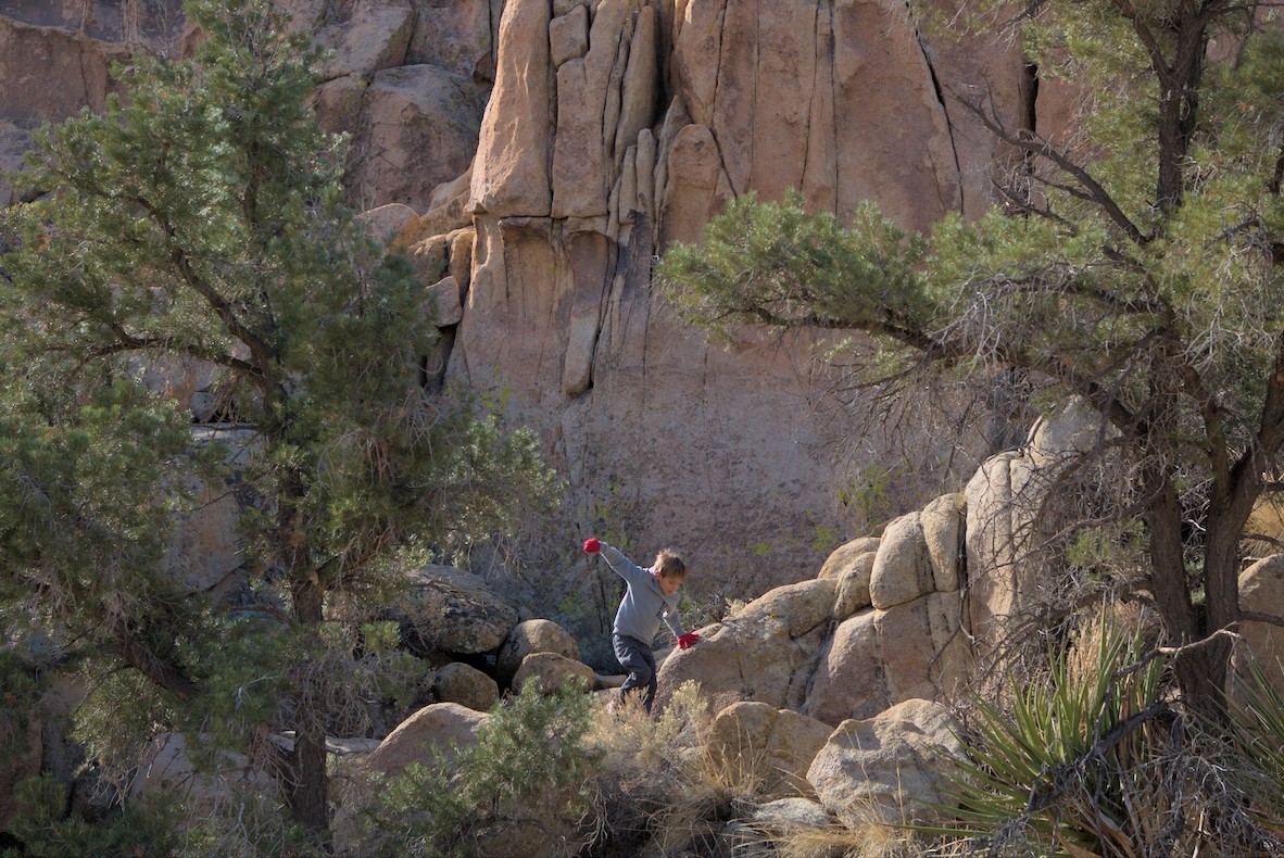 Visite de Joshua Tree park, où les paysages sont très différents de Death Valley. Là, il y a des espèces d’arbres cactus (les fameux Joshua Tree)à parte de vue et des concrétions d’énormes caillous posés là, un peu par hasard. En tout cas, ça a fait le bonheur des petits, qui ont passé leurs journées à escalader ces rochers comme des dingues, entre une visite de mine abandonnée (encore, dixit les gosses!) et de jardins de cactus dignes de BD de science fiction.