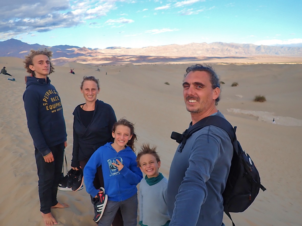 2ème partie de la route le matin et arrivée enfin à Death Park aux alentours de 11h. Là, on a commencé par une balade dans un canyon époustouflant, on a déjeuner dans un vieux saloon à Stovepipes Wells Village et on a poursuivi notre visite du parc par les dunes de sables. Les enfants se sont tellement éclatés à courir pieds nus dans ces immenses étendues de sable qu’on y est resté toute l’après midi, avant de rejoindre le Nevada et la petite ville de Beatty où nous avons passé un réveillon tranquille.